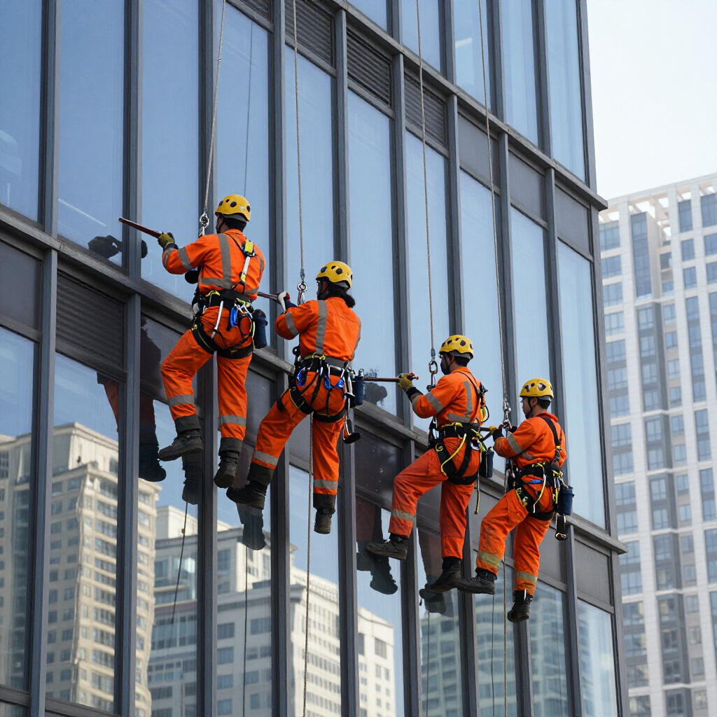 Ofrecemos limpieza profesional de fachadas de vidrio y aluminio, lavado de edificios en altura, mantenimiento de estructuras metálicas, limpieza industrial especializada y servicios técnicos con acceso por cuerdas certificados.